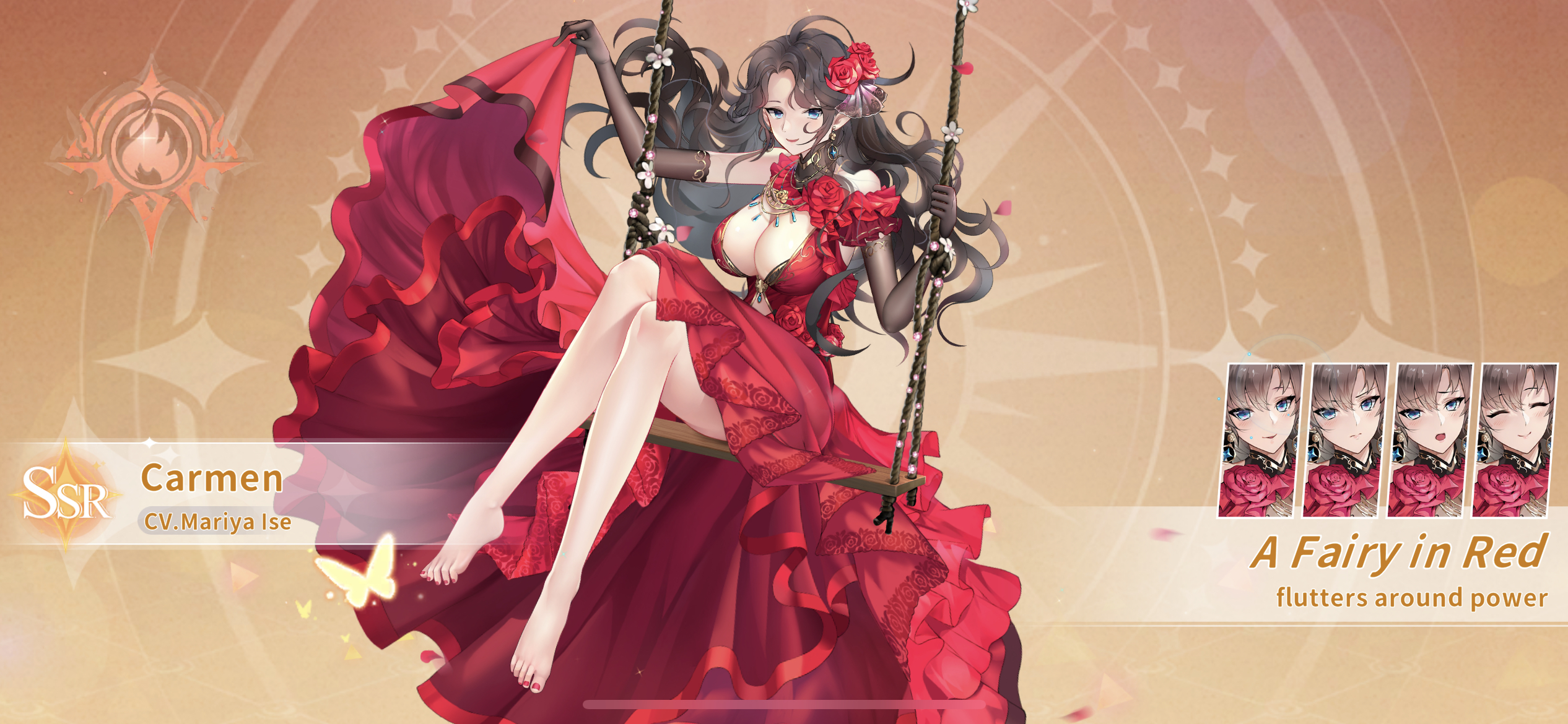 Level 1 - Carmen flings 6 knives at an enemy, each one dealing physical DMG equal to 100% of her ATK, with a 70% chance to place 1 stack of Burn Mark per knife.