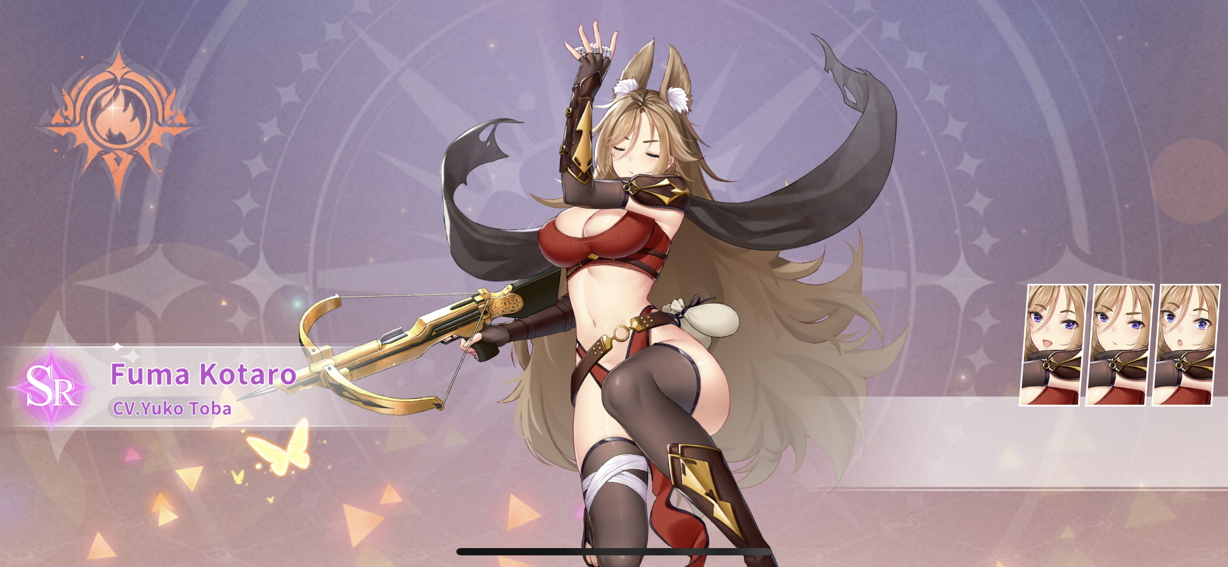 Level 1 - Fuma Kotaro raises her crossbow and fires 2 consecutive arrows, each attacking 1 random target at a time and dealing 75% of her ATK in Physical DMG.