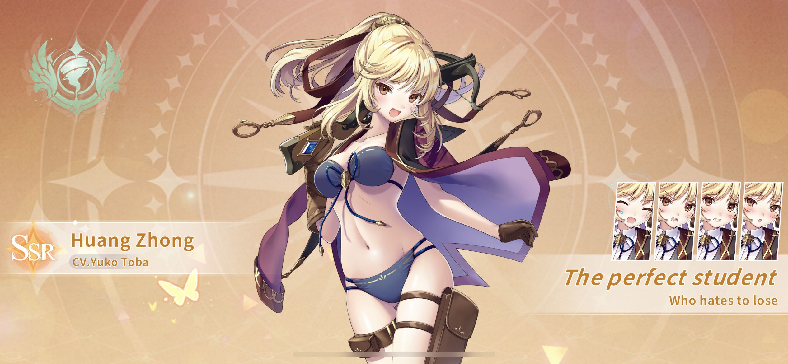 Level 1 - Huang Zhong aims and fires at the enemy 3 times, each dealing 30% of her ATK in Physical DMG to 1 random enemy. If2 of these shots crit, this skill will trigger 1 more time. Can only trigger 1 additional time per turn.