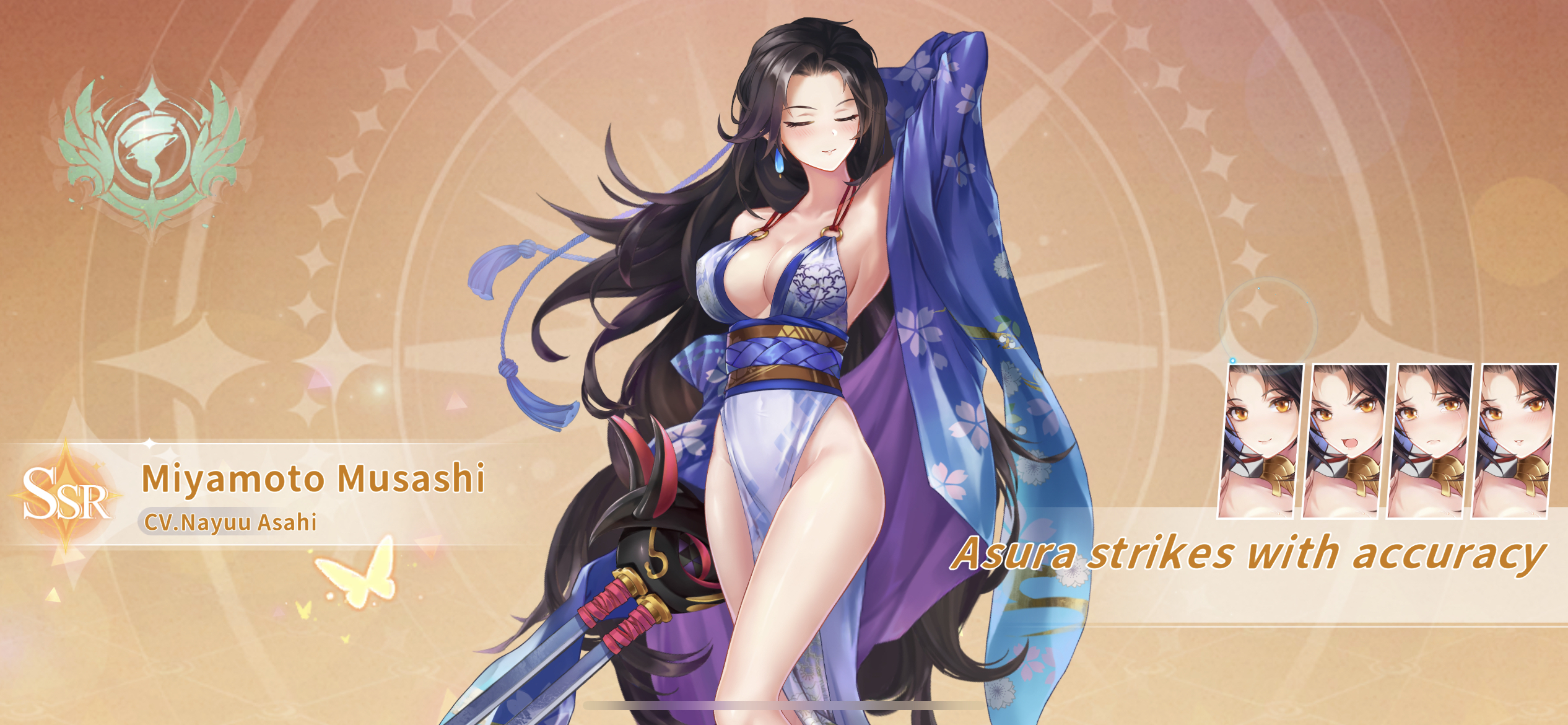 Level 1 - Miyamoto Musashi draw her blade and attacks a single enemy 3 times, each dealing 48% of her ATK in Physical DMG and increases her Final DMG Increase by 10%. Lasts until the end of the battle and stacks up to 10 times.