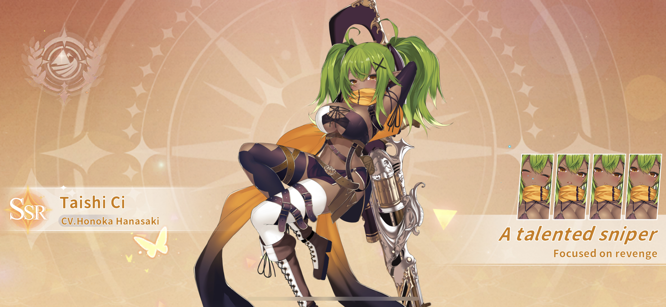 Level 1 - Taishi Ci deals 96% of her ATK in Physical DMG to the enemy with the highest ATK with a 50% chance to add 2 stack of Hate Mark to targets struck.