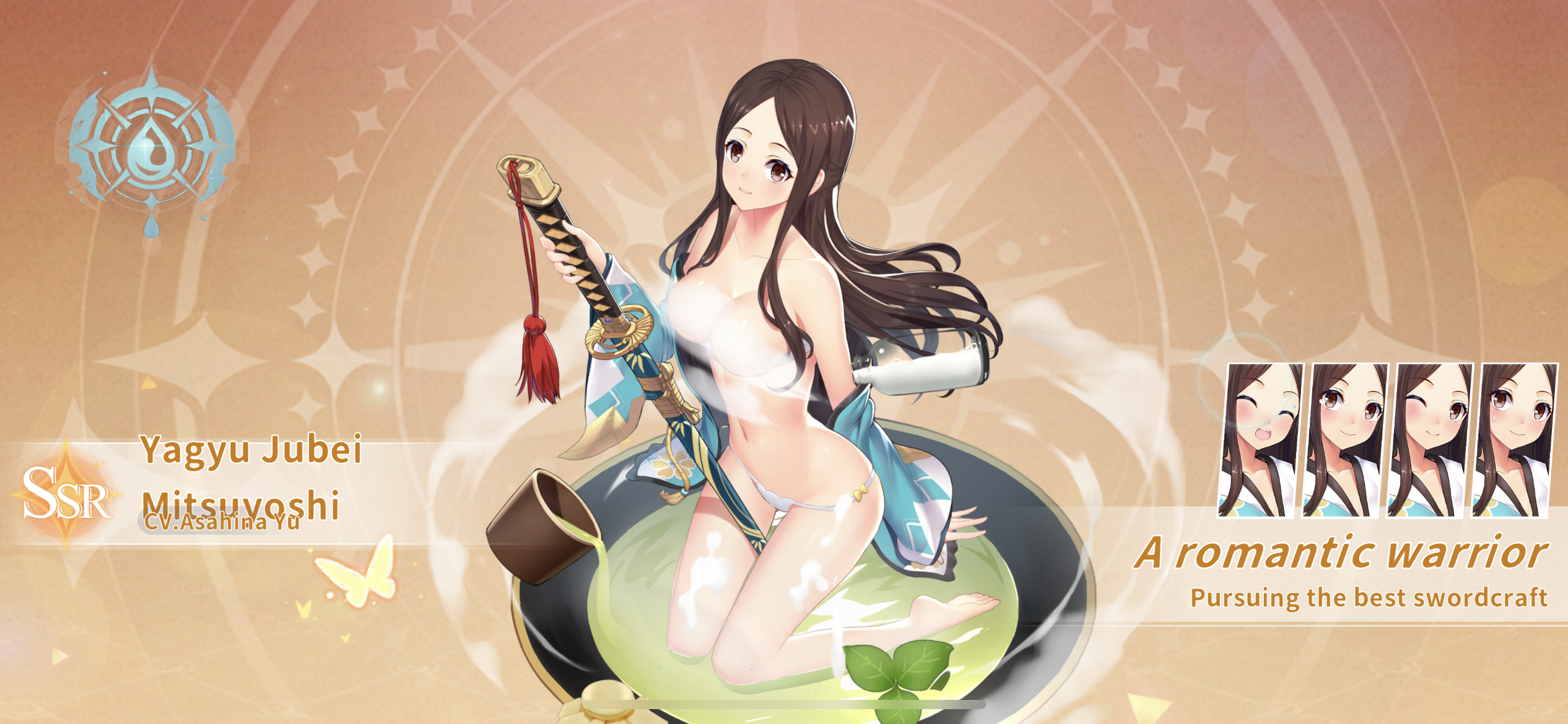 Level 1 - Yagyu Jubei Mitsuyoshi uses her original fencing technique to launch 4 attacks on the enemy with the lowest percentage of HP, each attack dealing 32% of her ATK in Physical DMG.